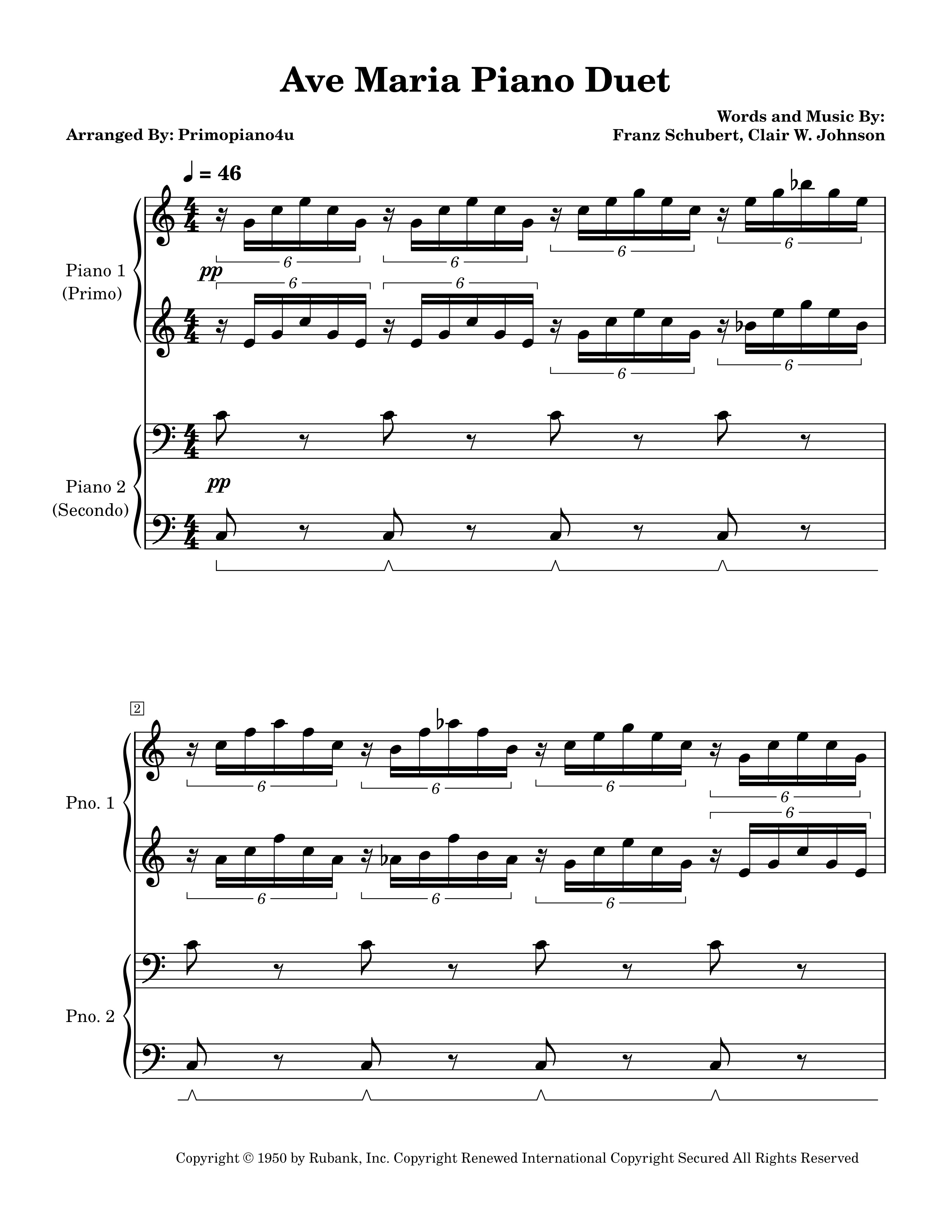Hallelujah Piano Duet (For Four Hands) sheet music arranged by PrimoPiano4u.